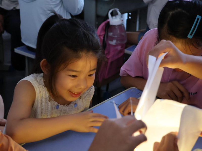 在“螢火流星雨”活動(dòng)中,維生素B2片溶解于礦泉水,強(qiáng)光手電照射下,黑暗中瞬間涌現(xiàn)細(xì)碎光點(diǎn),如微縮流星緩緩流動(dòng)。“哇,真的像天上的流星!”孩子們驚呼圍攏,眼睛緊緊盯著這奇妙景象。實(shí)踐團(tuán)成員通過講解生物熒光原理與光的散射知識(shí),從“為什么維生素B2能讓水‘發(fā)光’”到“真正的流星雨是怎么形成的”,將生物、天文知識(shí)融入趣味實(shí)驗(yàn)。孩子們不再是知識(shí)的被動(dòng)接受者,而是主動(dòng)觀察者、提問者,當(dāng)理解到“原來生活里的小藥片,也能變出宇宙的浪漫”時(shí),他們眼中閃爍的,是對科學(xué)融合之美的全新認(rèn)知。